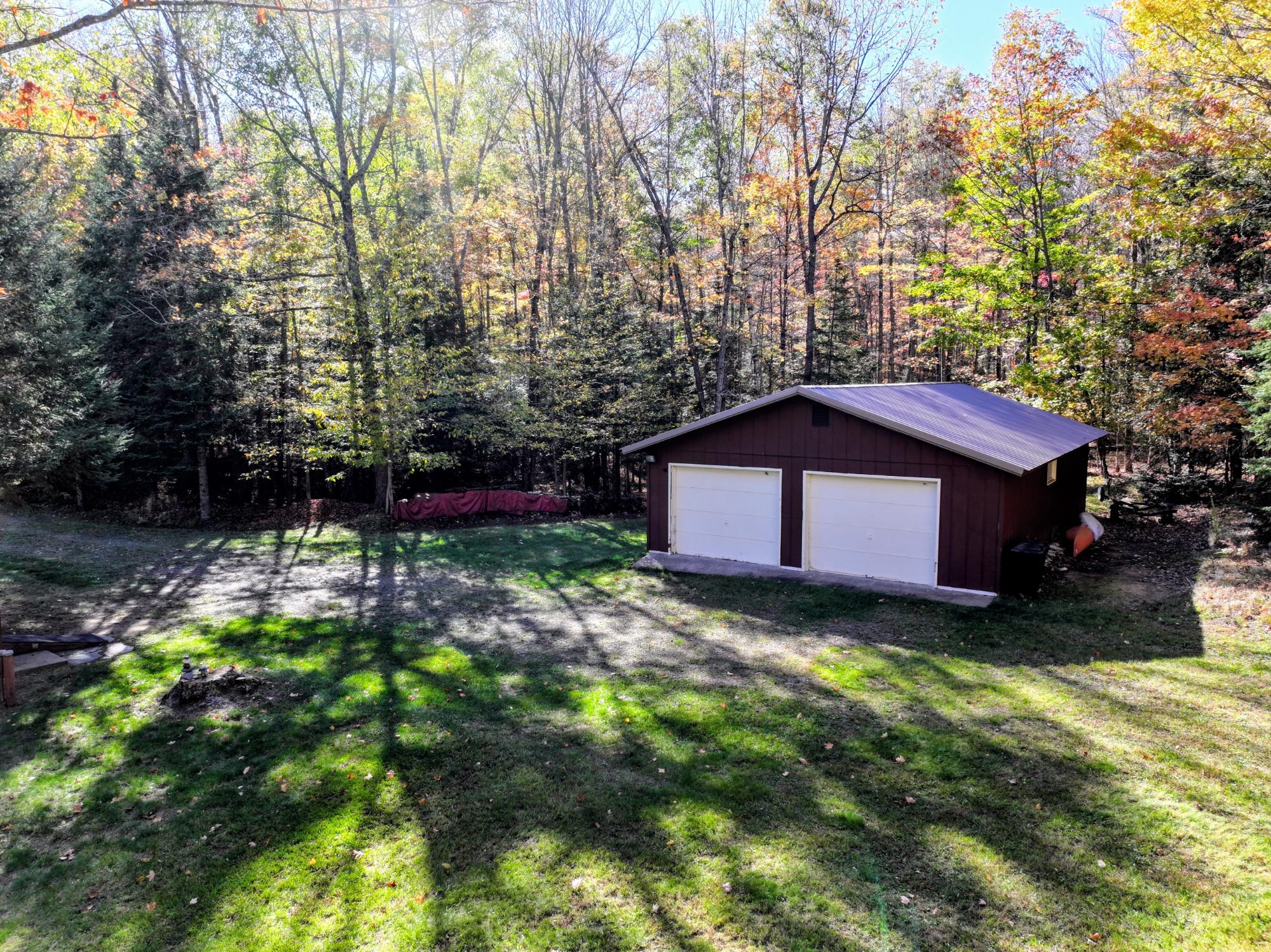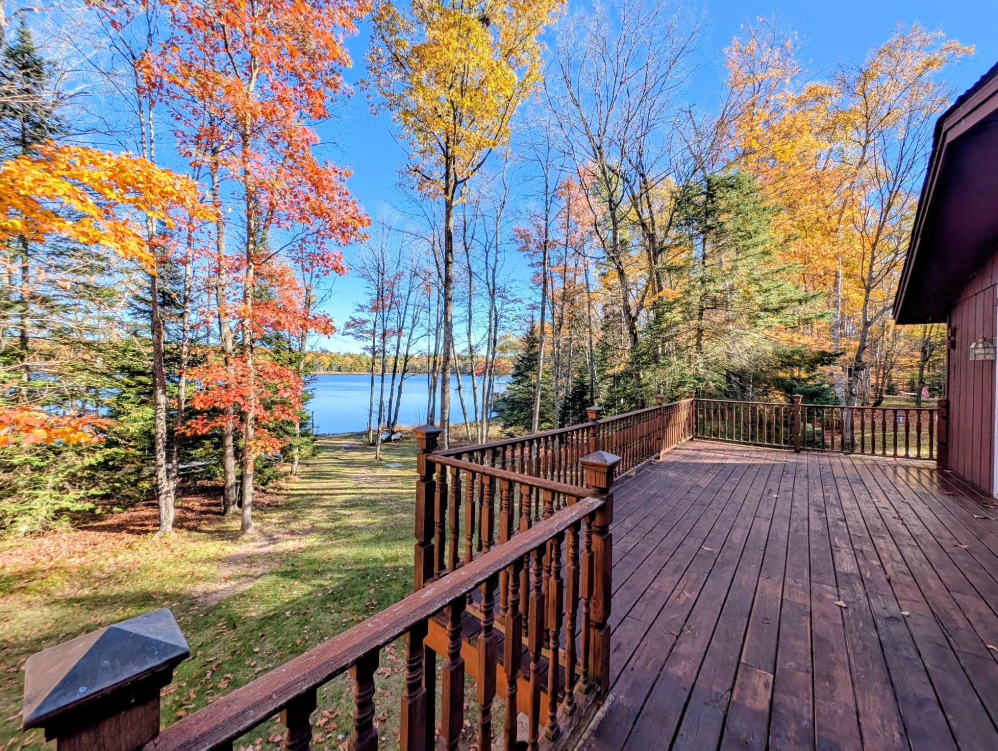 You've found paradise on Pine Island Lake! This 3 bedroom 2 full bathroom home sits on 4.60 secluded acres and has 250 ft of lake frontage on the private Pine Island Lake, a no-wake lake with tremendous fishing. The home features an open concept main level with new sliding doors that open to a large wrap around deck with breathtaking views of the lake. The lower level features a spacious recreation room with a walkout to a covered deck good for storage and relaxing in the shade. Along with your 4.60 acre wooded lot you also acquire 1/32 ownership of about 450 acres of protected, shared backland which has rec. trails and adjoins 899 acres of county land for hunting enthusiasts. The property also features a detached 26x40 garage with 3 overhead doors for easy in and out access, a 4BR septic installed in 2021, new furnace, new luxury vinyl flooring, 2 fireplaces with updated masonry (gas and wood), and remodeled bathrooms. Pool table and pontoon included.