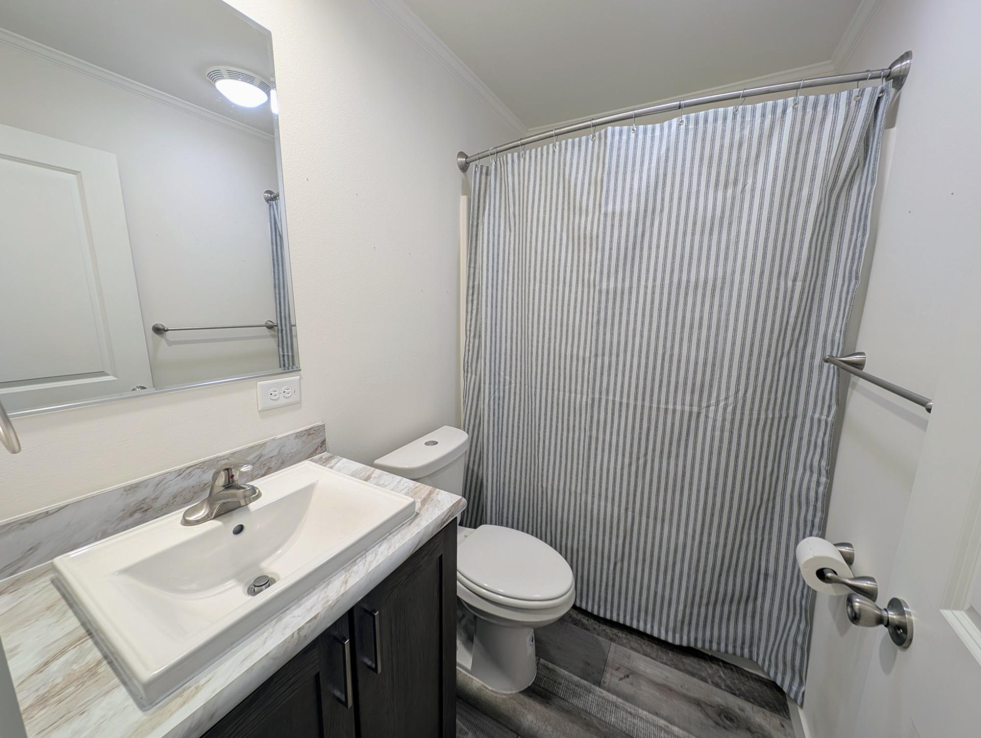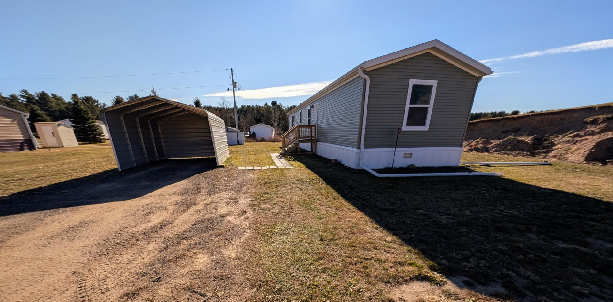 Here's your chance to own a NEW 2025 manufactured home! This modern 3 bedroom 2 bathroom home sits on a slab with insulated skirting at the end of a private road. The home features an open concept living with a master bedroom and bathroom on one end and two bedrooms on the other side. Appliances include dishwasher, refrigerator, microwave, oven with range hood, washer, and dryer. A carport and shed are also included. No real estate conveyed. Come see it today!