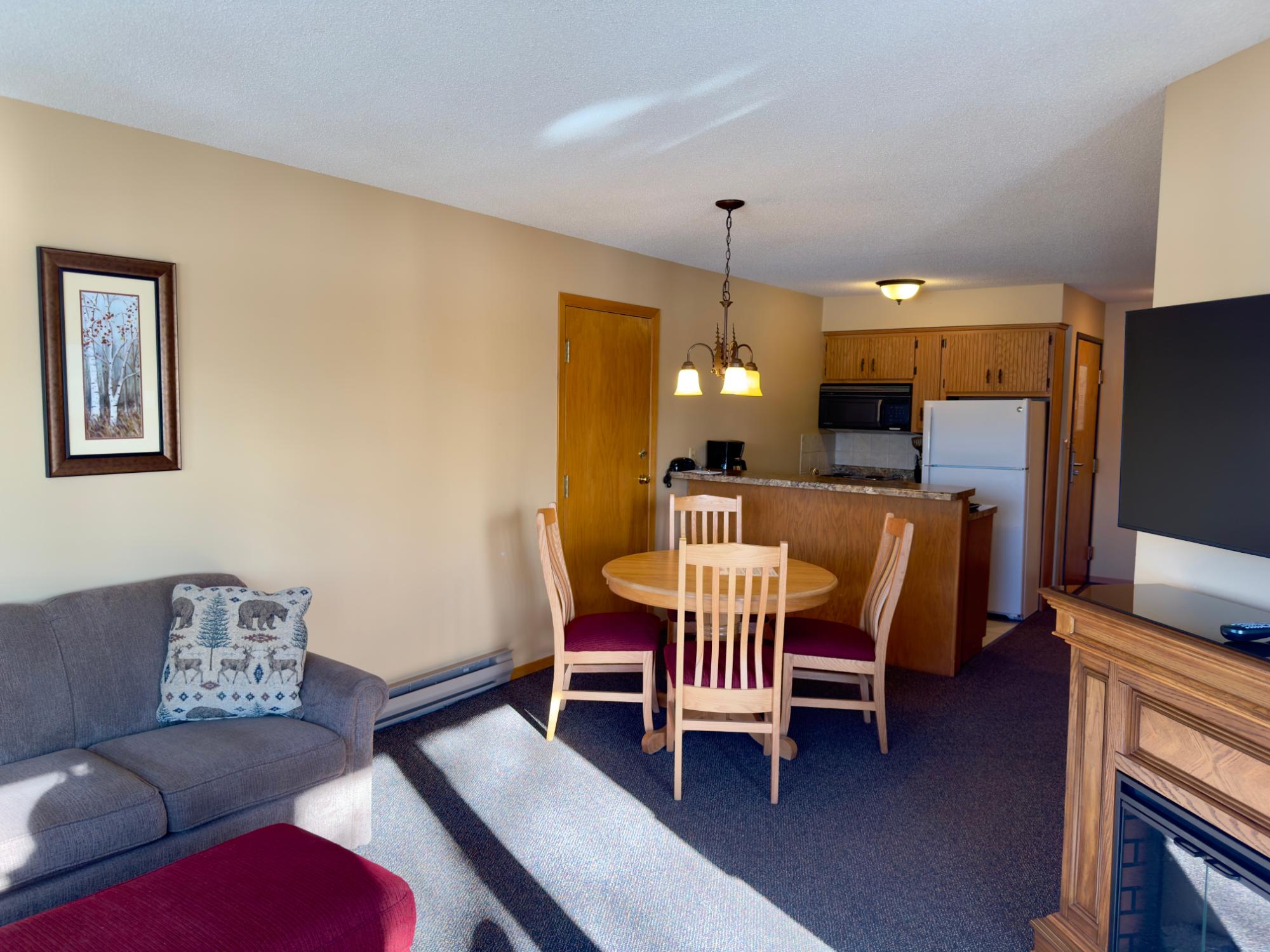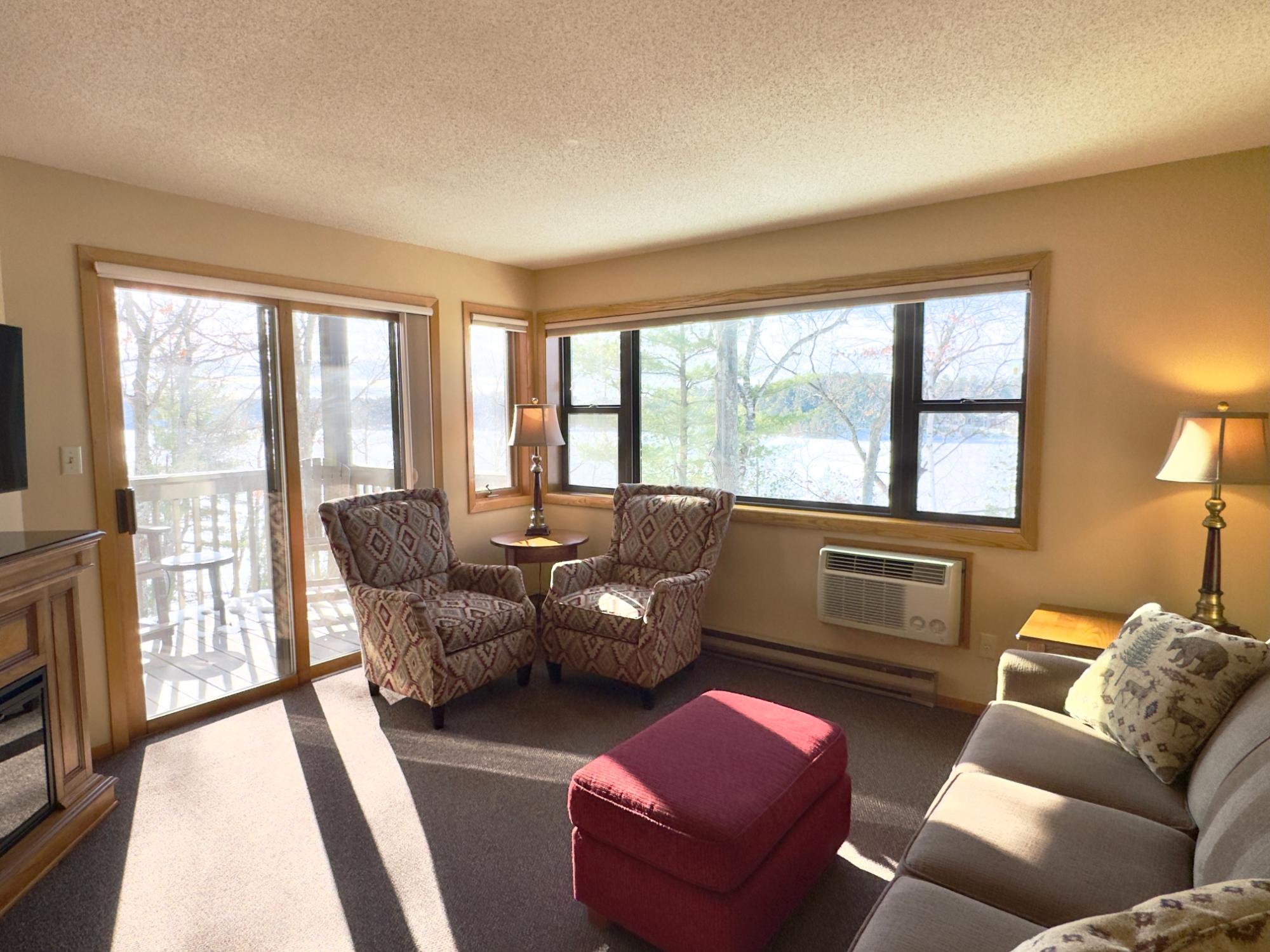 This impeccably maintained one-bedroom, one-bath unit at The Pointe Hotel and Suites comes fully furnished and boasts an excellent rental history. The open-concept kitchen and dining area flows into a living space with an electric fireplace. Step onto your private deck to enjoy stunning southwest views. The property includes a host of desirable amenities such as pier slip access on the Minocqua chain, scenic water views, a swimming pool, hot tub, sauna, exercise room, and conference rooms. Outdoor features include shared grilling areas, campfire pits, and bikes. Conveniently located within walking distance to downtown and near extensive snowmobile trails, this location supports year-round rental income. Don’t miss your chance to maximize vacation time and earn extra income with this exceptional opportunity.