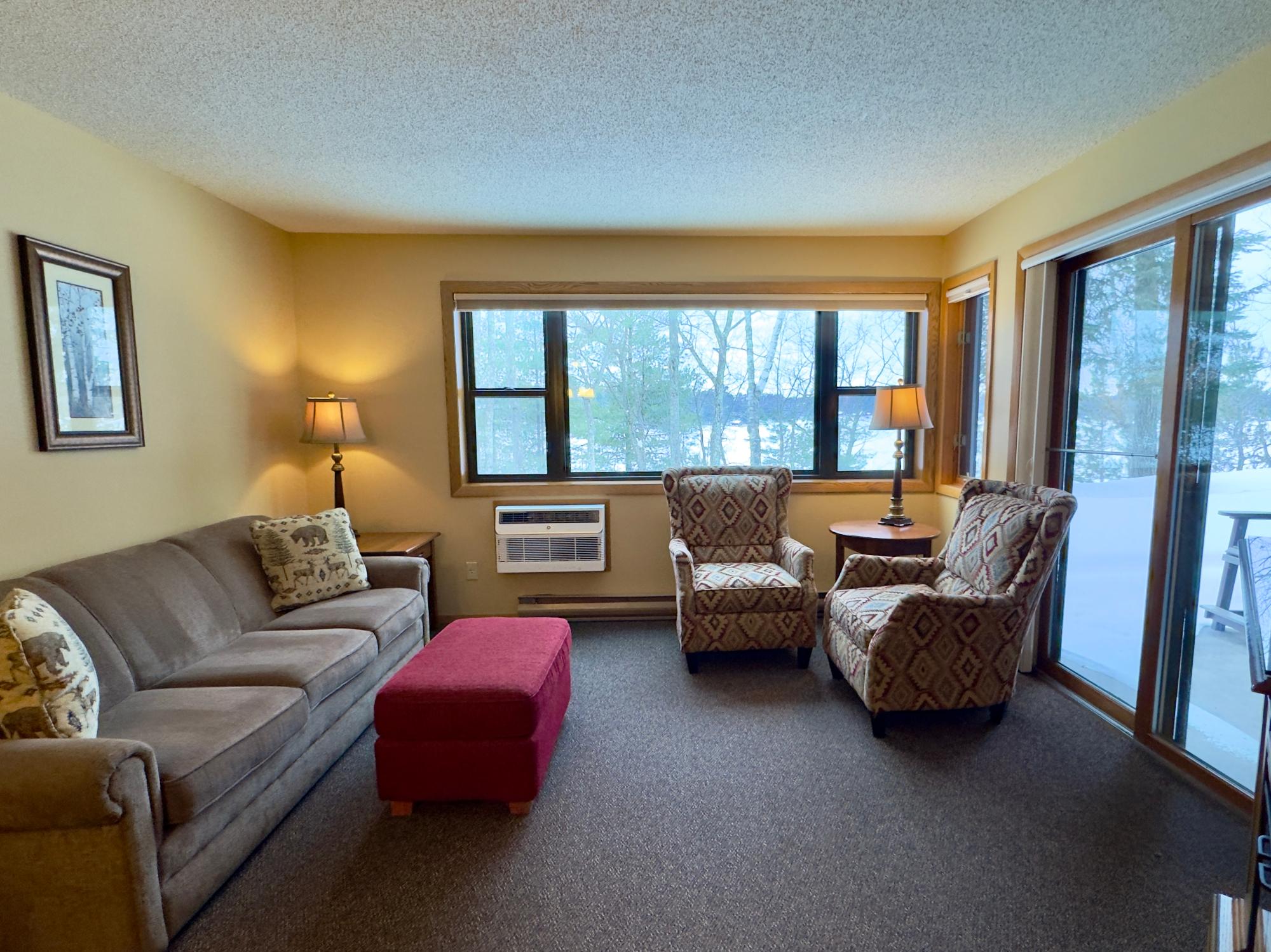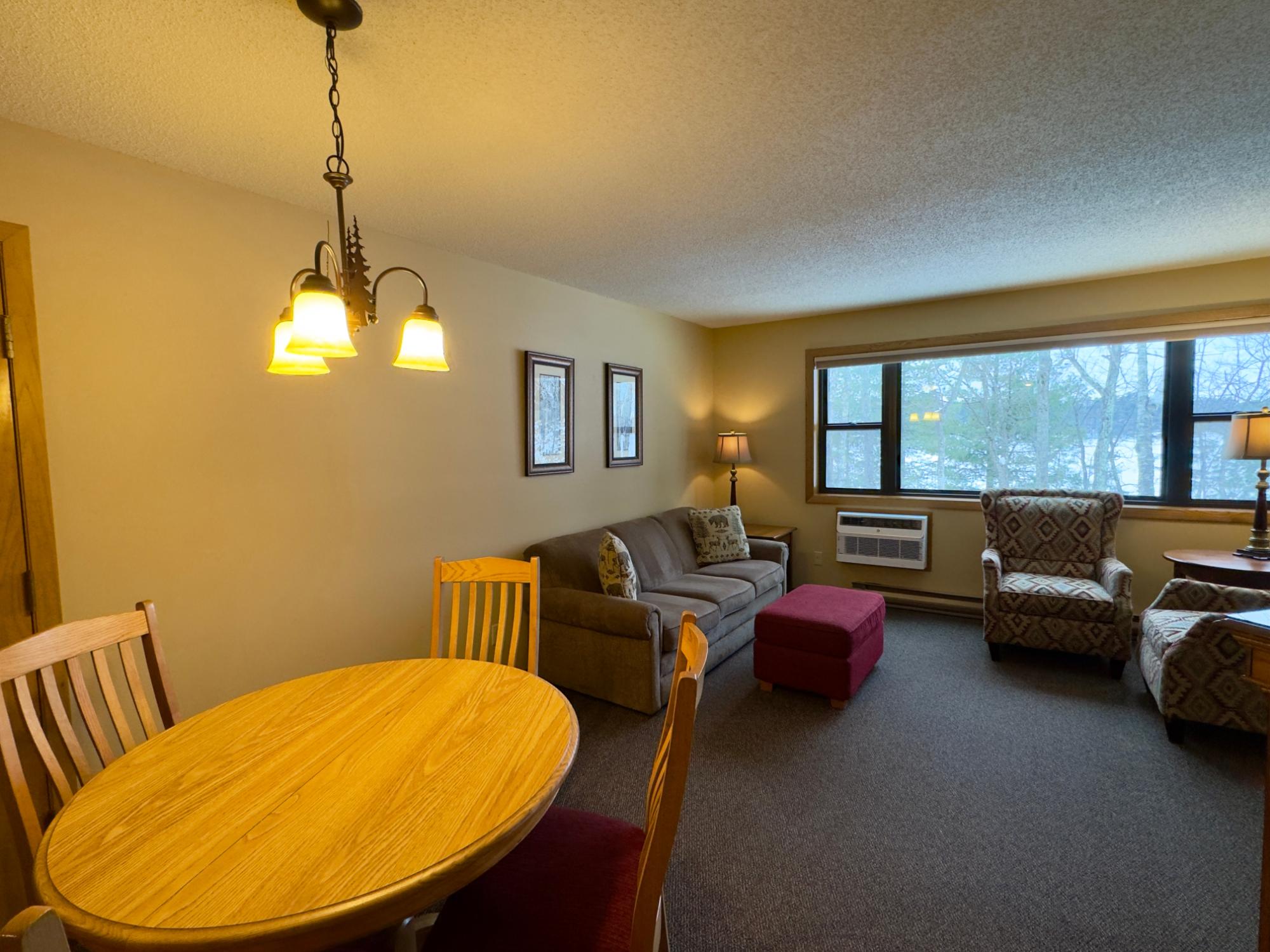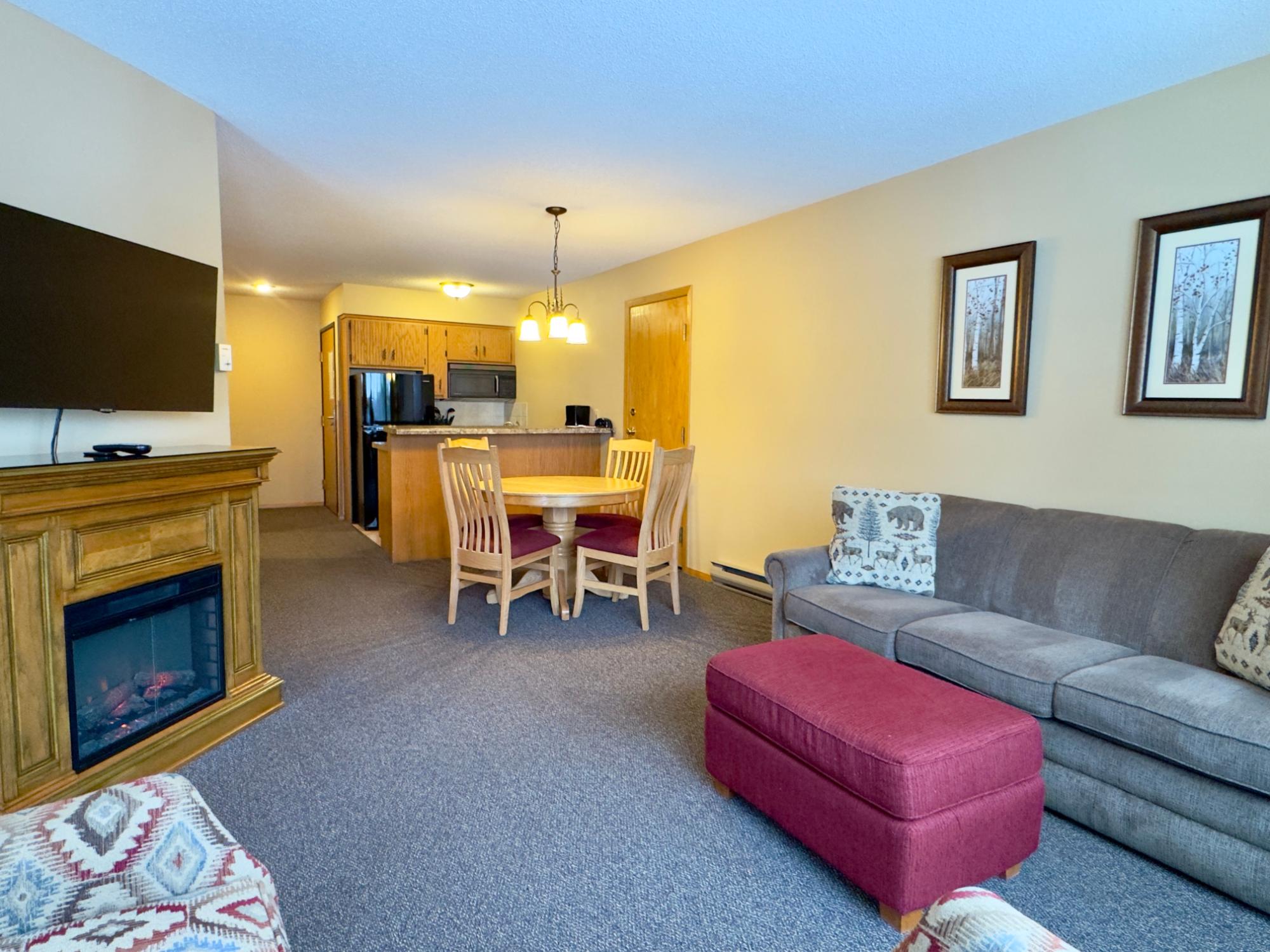 This impeccably maintained, fully furnished one-bedroom, one-bath unit at The Pointe Hotel and Suites offers an exceptional blend of comfort, convenience, and income potential. Featuring an open-concept kitchen, dining, and living area with a cozy electric fireplace, the space flows seamlessly onto a private patio with sweeping western views and direct access to beautifully maintained common grounds, grilling areas, fire pits, picnic tables and access to the Minocqua Chain. The property’s outstanding amenities include a swimming pool, hot tub, sauna, exercise room, and conference facilities. Ideally located within walking distance to downtown and near expansive snowmobile trails, this unit not only maximizes your vacation time but also delivers excellent year-round rental income. Don’t miss your chance to own this remarkable property and make the most of everything The Pointe Hotel and Suites has to offer!