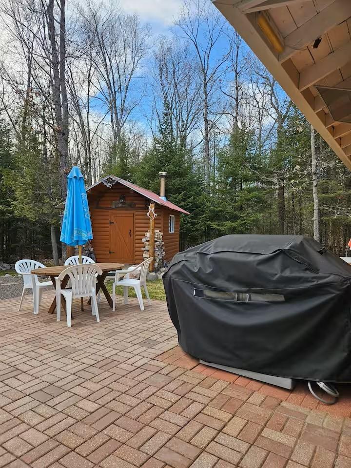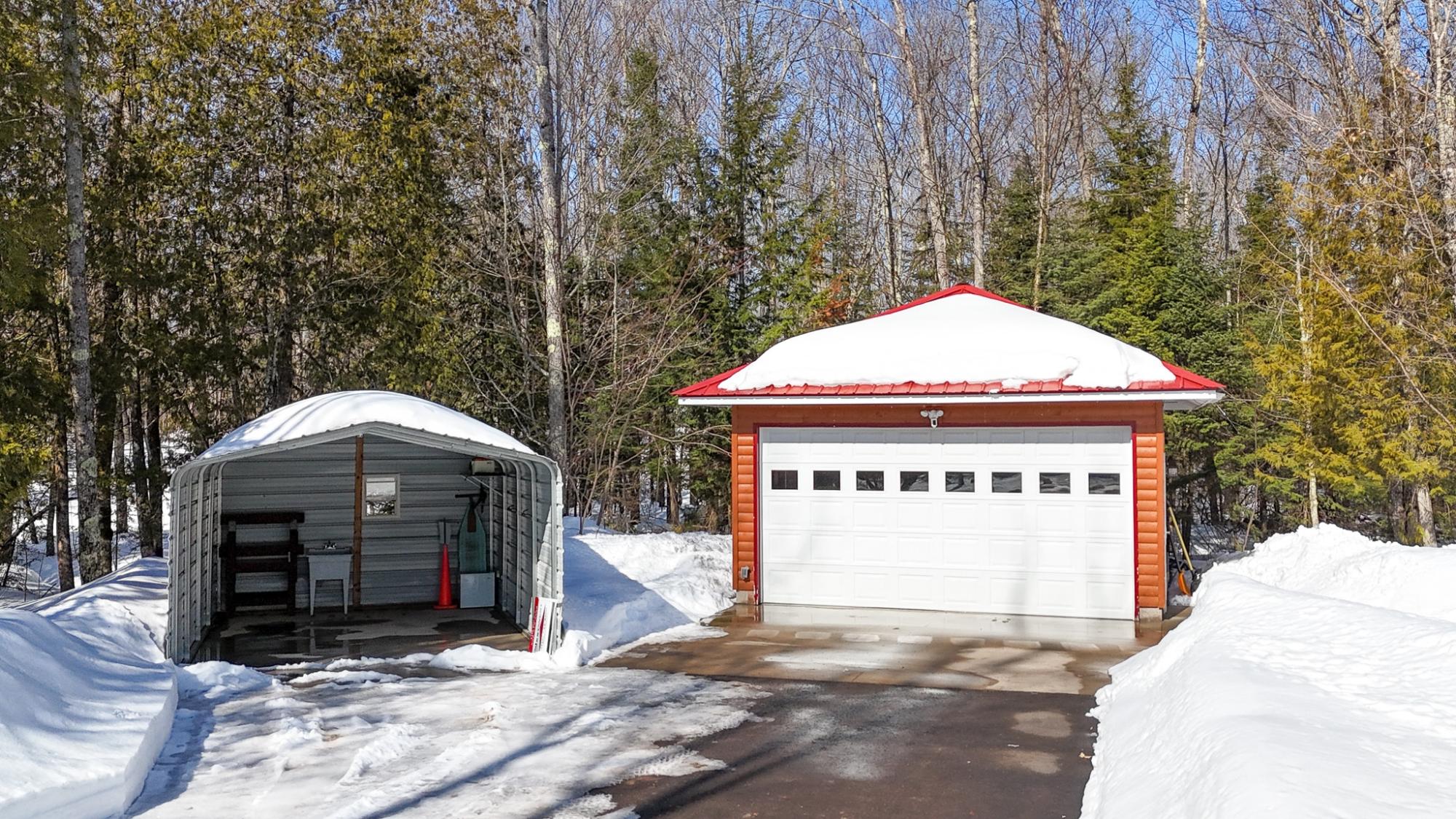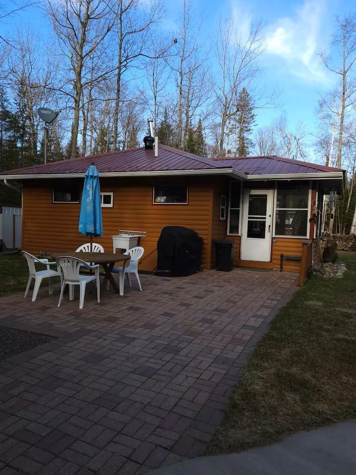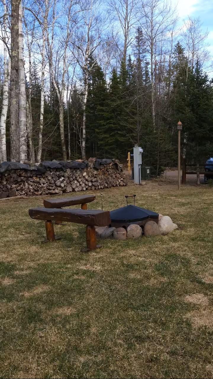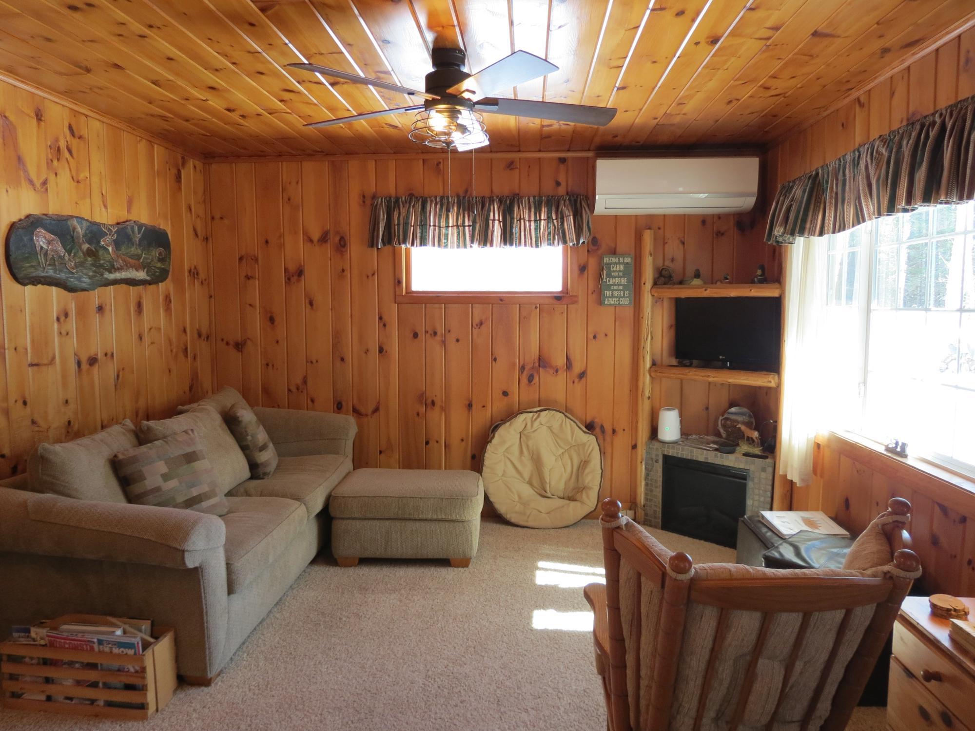 Private Northwoods getaway in highly sought-after Winchester! This furnished move-in ready 4-season cabin features a charming half-log exterior and warm knotty pine walls and ceilings that create the perfect Up North feel. The cabin offers 2 bedrooms and 1 bath and has been very well maintained. A detached 2-car half-log garage is insulated and heated and includes a bonus bedroom—ideal for guests, extra sleeping space or a hobby area. Enjoy the separate half-log wood-burning sauna after a day on the trails. Currently operating as a successful Airbnb rental, this property offers excellent income potential or the opportunity to enjoy as your own year-round home or vacation retreat. Located near skiing, biking and snowmobile trails, making it a perfect basecamp for Northwoods recreation. Home can easily be lifted to add a full basement. 2500 gal Holding tank is already set up to add a mound system.