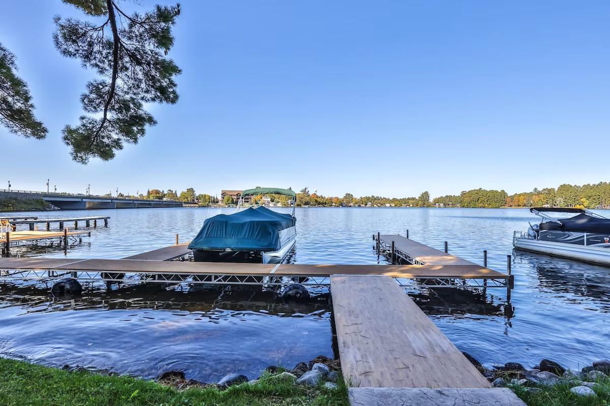 Experience the best of lakeside living with this 3-bedroom, 3-bath condo on the sandy shores of iconic Minocqua Lake—an exceptional investment, sold fully furnished, with weekly rentals allowed, or your perfect low-maintenance getaway. Inside, enjoy hickory hardwood floors, custom cherry cabinetry, elegant granite countertops, and added storage and pantry space. The open-concept kitchen, dining, and living area seamlessly extends to a walk-out lakeside patio for summer grilling and relaxation. Upstairs, the spacious primary suite boasts a walk-in closet, ensuite with soaking tub and shower, and a private lakeside deck, with laundry conveniently located near two additional bedrooms and a full bath. Situated within walking distance to downtown coffee shops, boutiques, and restaurants, this property is your invitation to the ultimate Northwoods lifestyle.